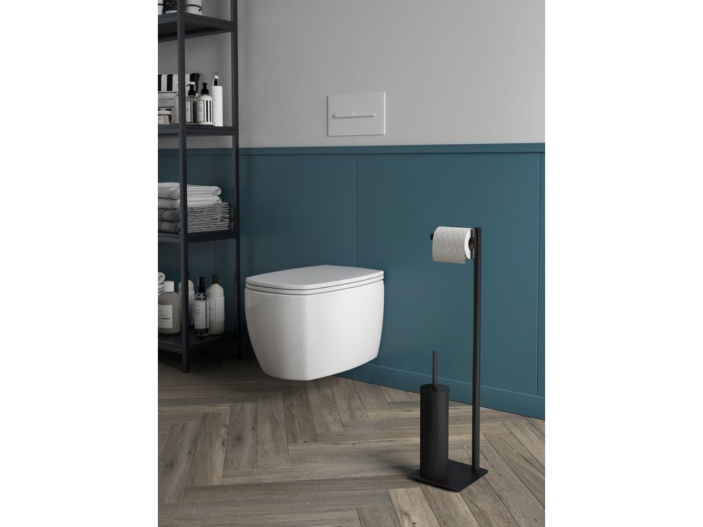 ARTU stojan s držákem na toaletní papír a WC štětkou, hranatý, černá mat