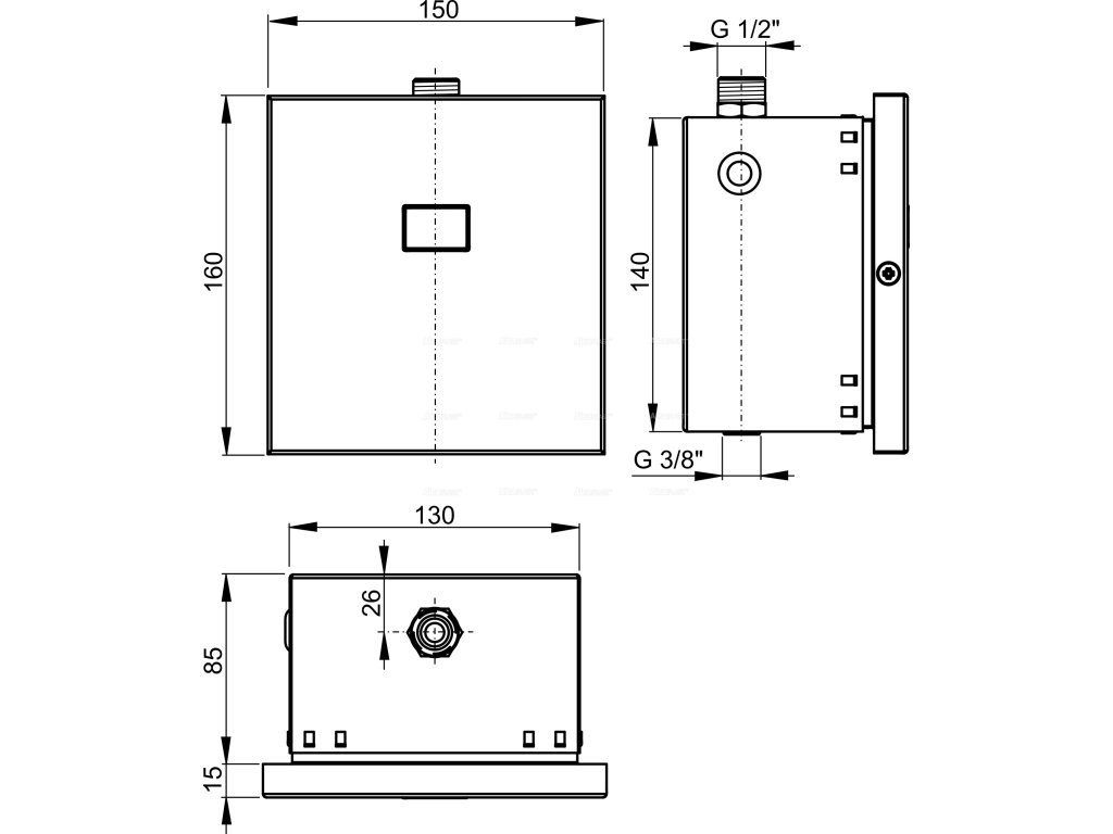 • Použití Pro automatické splachování pisoáru Pro instalační rám A107S Pro zabudování do montážních prvků pro pisoáry Pro zabudování do sádrokartonové konstrukce i k zazdění
