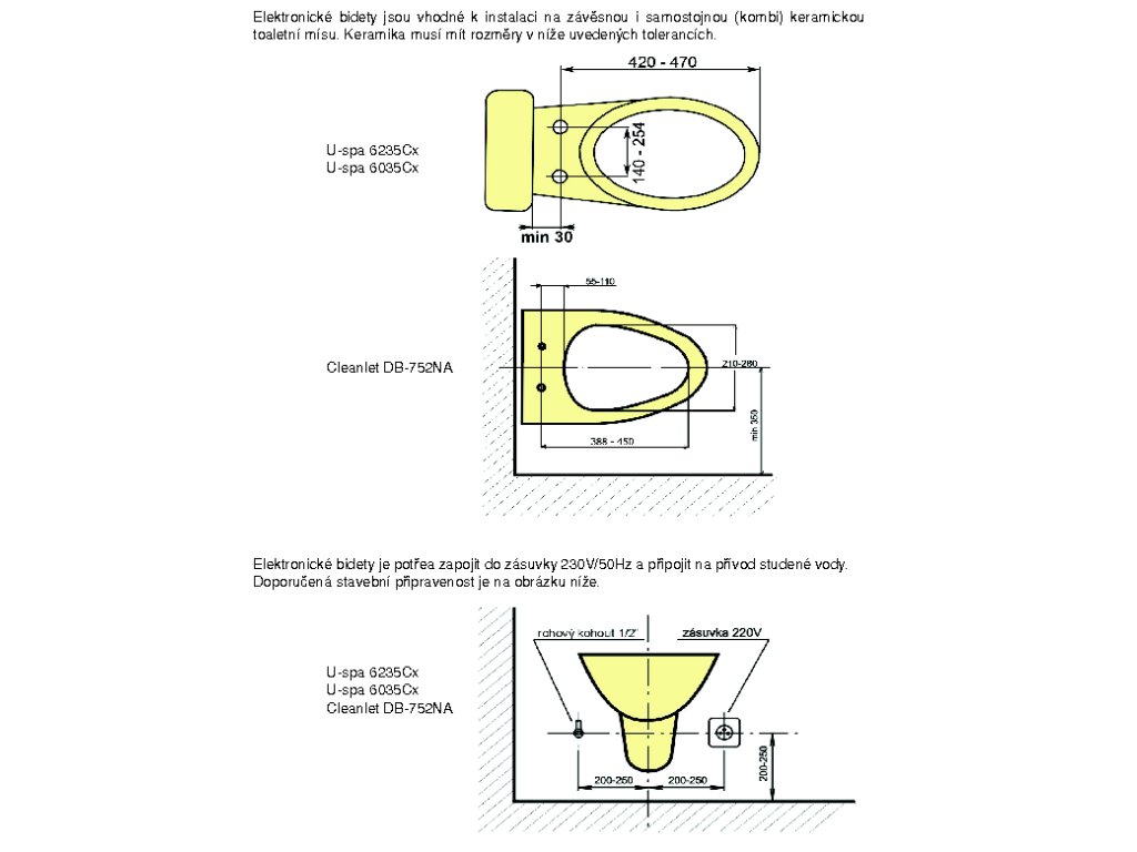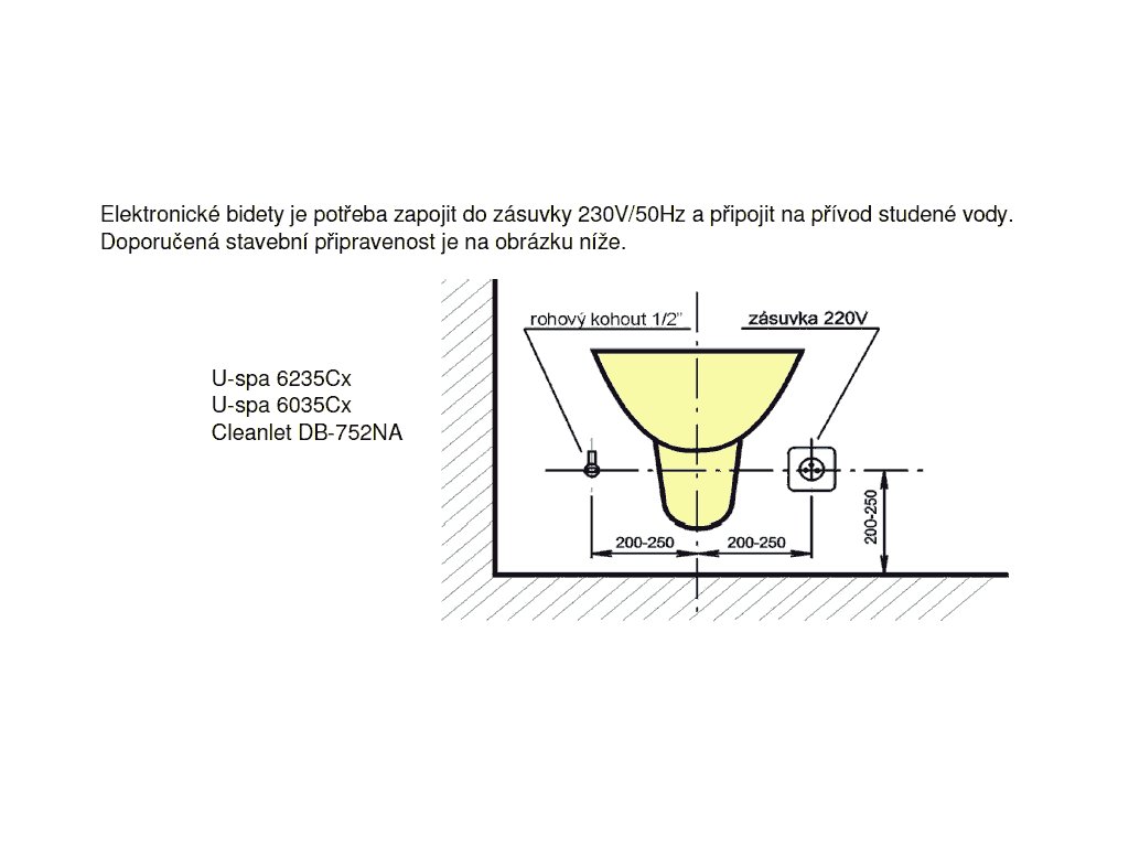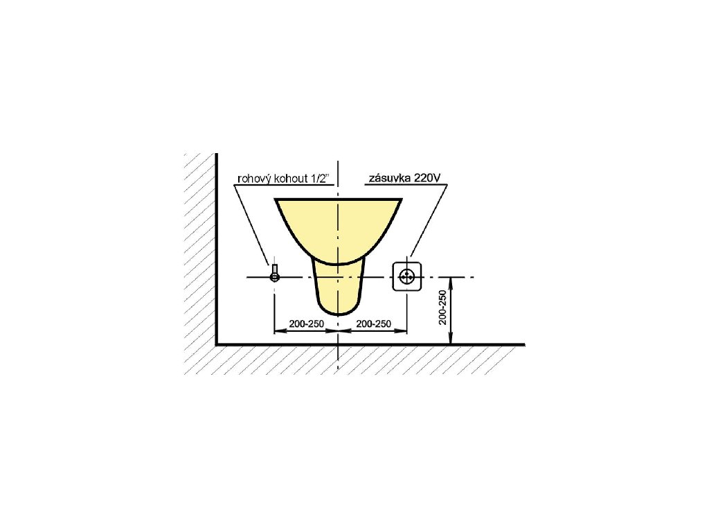 - do zásuvky 230 V / 50 Hz (měla by být umístěna v dosahu 1,5 m od bidetu)