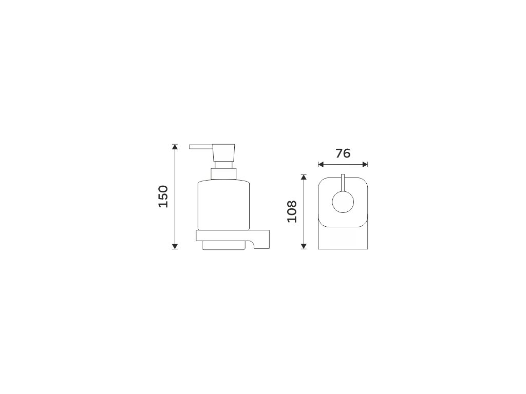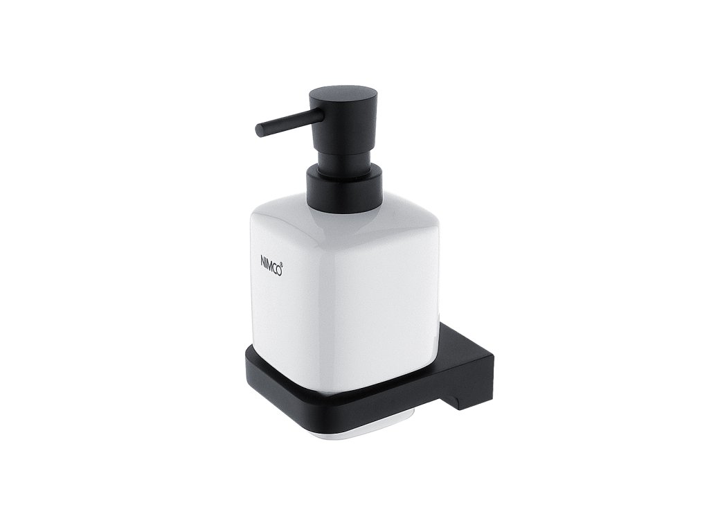 Nástěnný dávkovač na tekuté mýdlo o objemu 320 ml. Nádobka keramická. Pumpička mosaz/černý mat.
