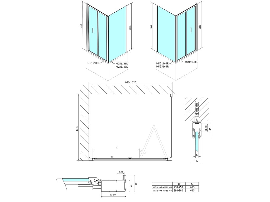 - Snadná montáž, tolerance 20 mm nastavením skel v profilu