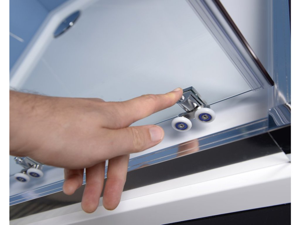 Bezproblémový chod a snadné čištění posuvných dveří zajišťují zdvojené výklopné pojezdy |
