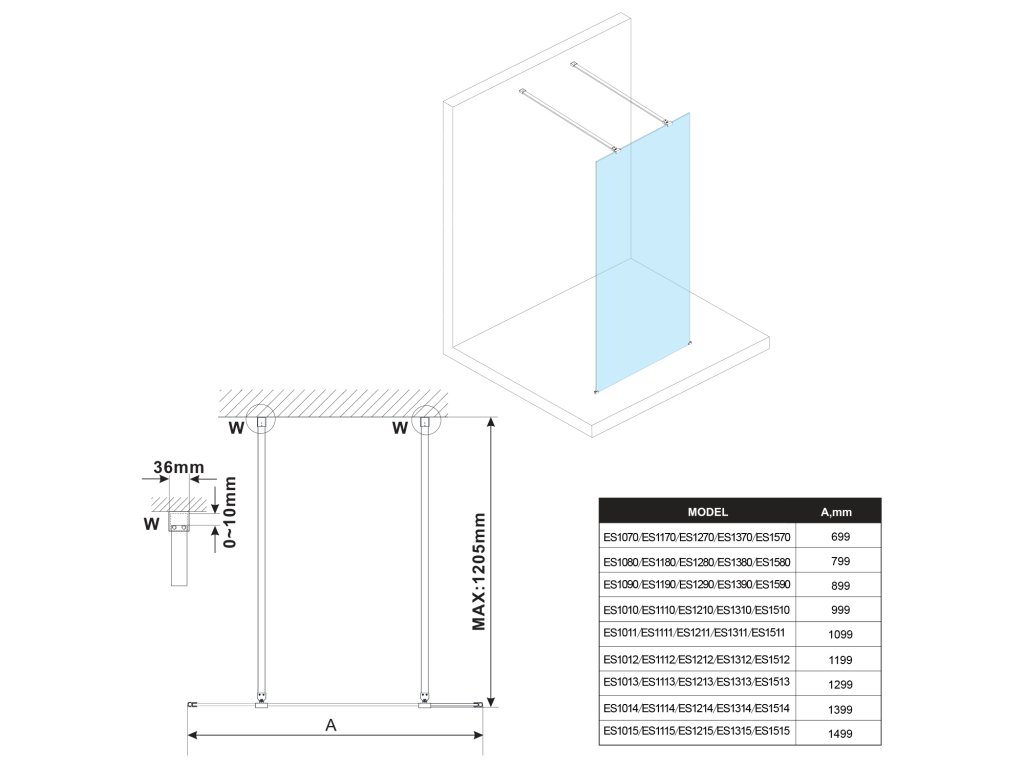 - Zástěny v šířkách 700 až 1500 mm