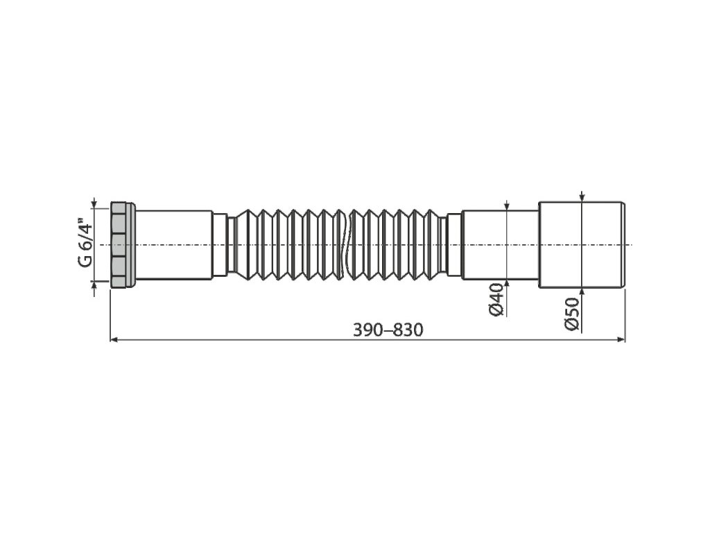 • Vlastnosti Připojení O6/4" × 40/50 mm Nastavitelná délka 390 - 830 mm Materiál: polypropylen