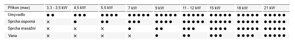 Přehledná tabulka vhodnosti použití, která vám pomůže vybrat správný model podle náročnosti na spotřebu vody: