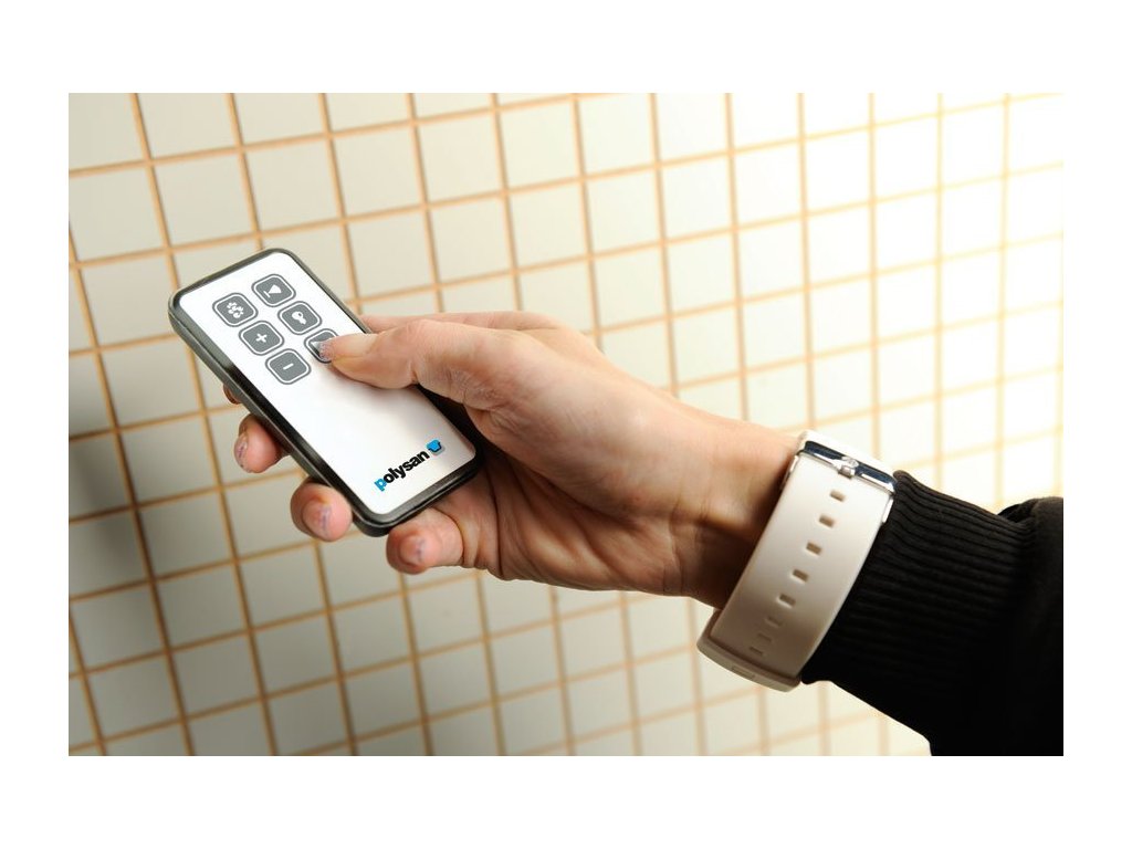 - Ovládání komunikuje se senzorem umístěným na okraji vany na bázi infračerveného signálu.