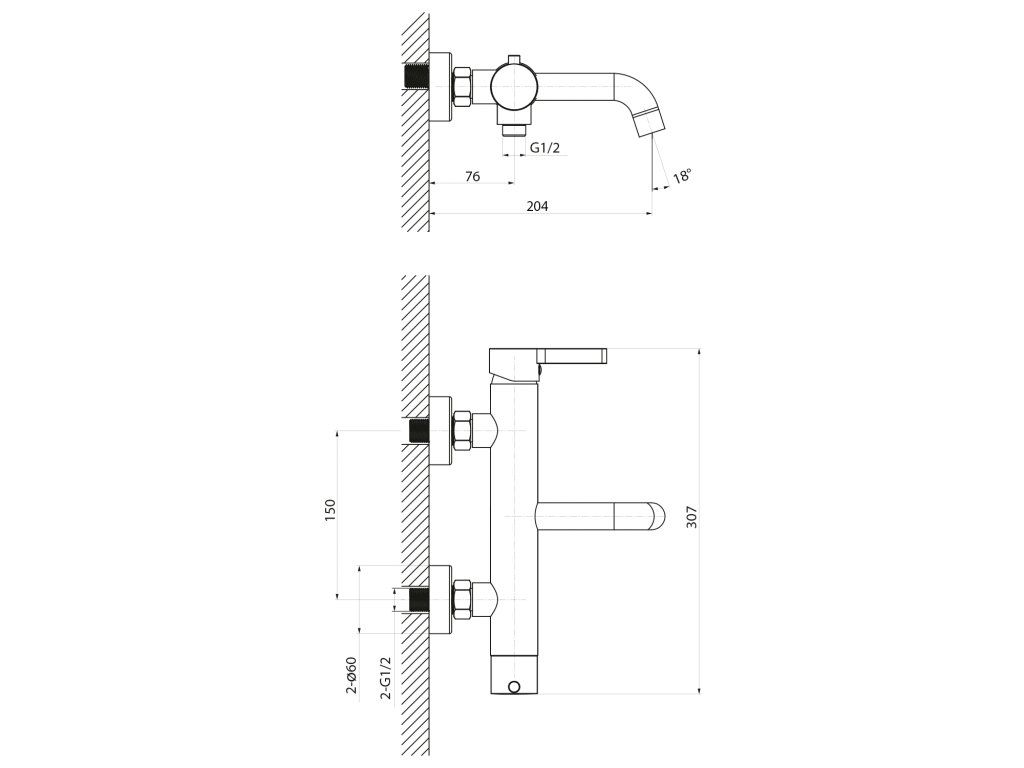 | Instalace: | Nástěnná 150 mm |