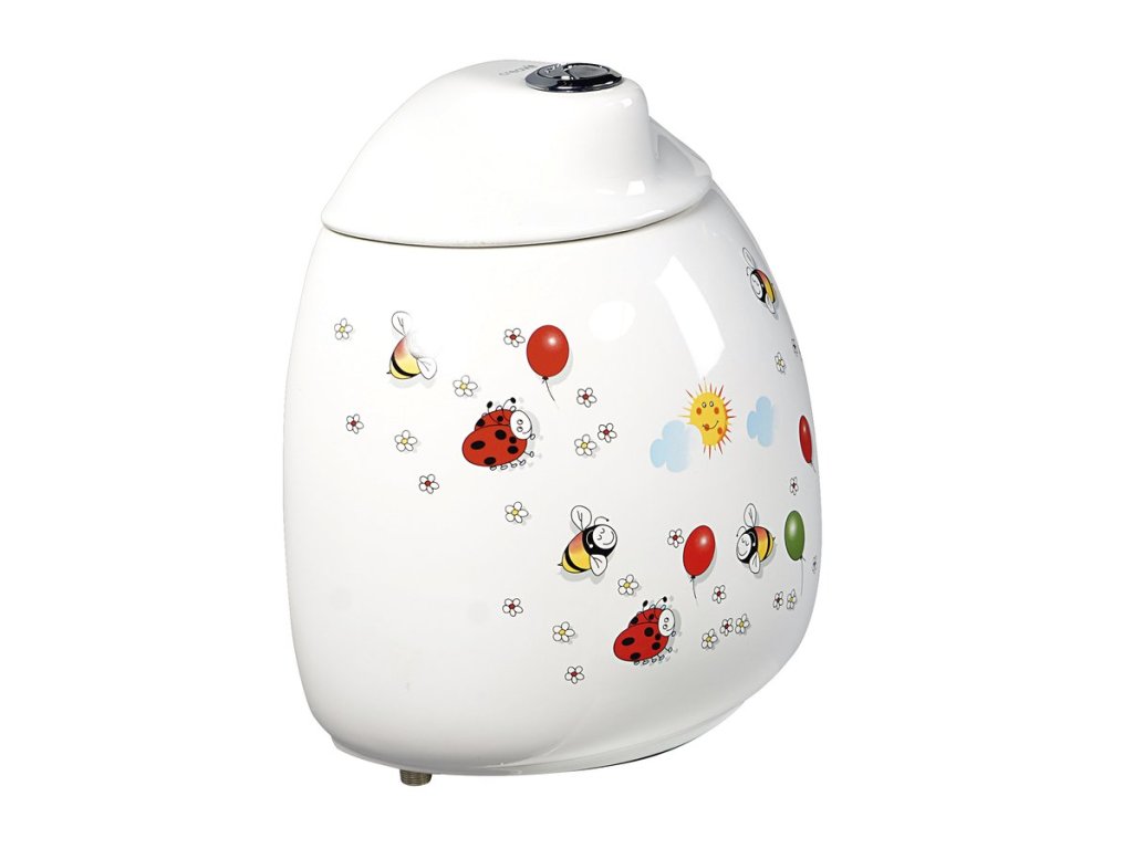 Série dětské keramiky KID je vhodná nejen pro jesle či mateřské školky, ale nalezne své místo i ve standardní koupelně a všude tam, kde je běžná keramika pro děti příliš velká. Lze volit bílou keramiku nebo veselý barevný potisk, který jistě vykouzlí úsměv na tvářích všech malých uživatelů.
