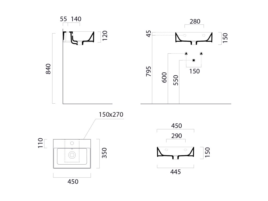 Součástí série umyvadel jsou navíc dvě kulatá umyvadla na desku a dvě obdélníková vestavná umyvadla, všechna s velmi štíhlými hranami.