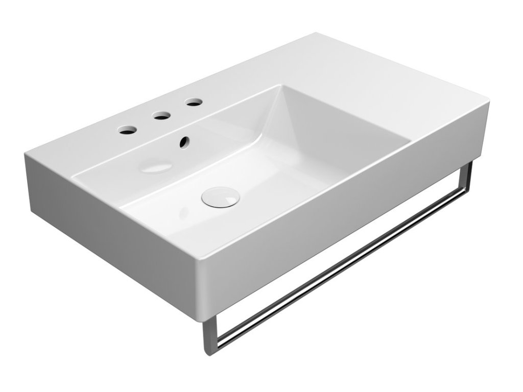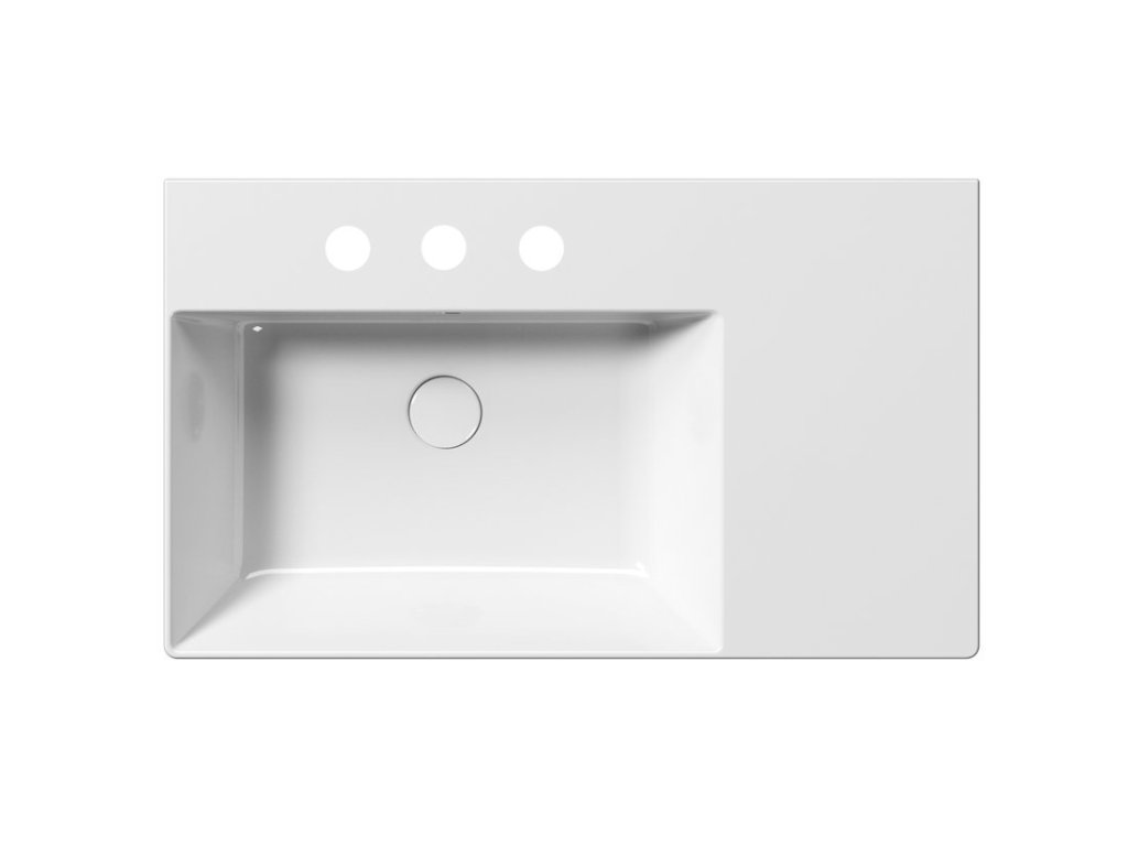 KUBE X keramické umyvadlo 80x47cm, s odkládací plochou vpravo, broušená spodní hrana, 3 otvory, bílá ExtraGlaze