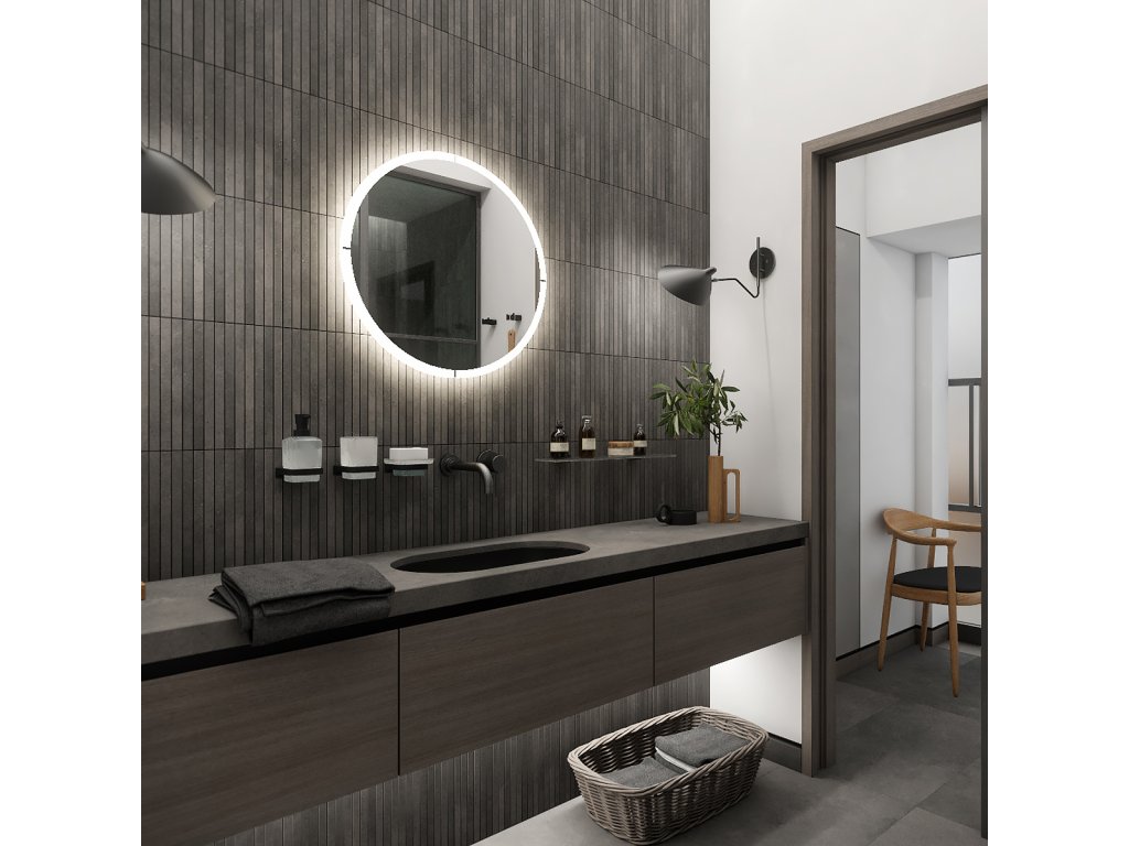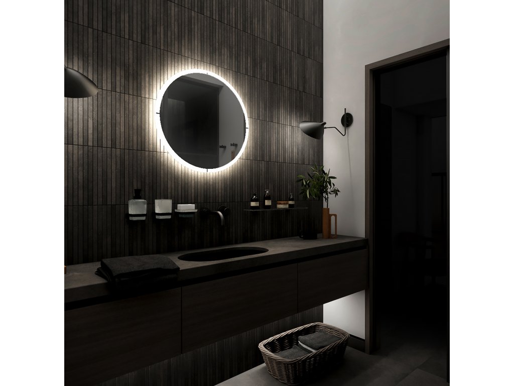 Koupelnové podsvícené KULATÉ LED zrcadlo. Příkon 28 W, teplota chromatičnosti 6000 K. 2016 Lumen.