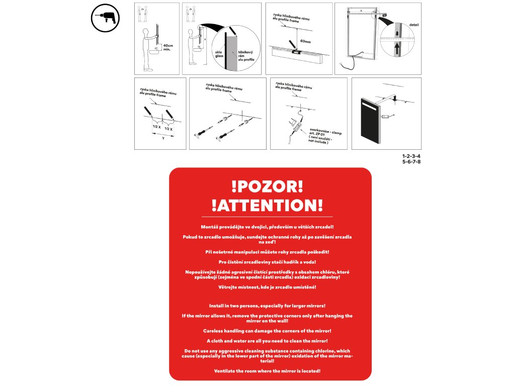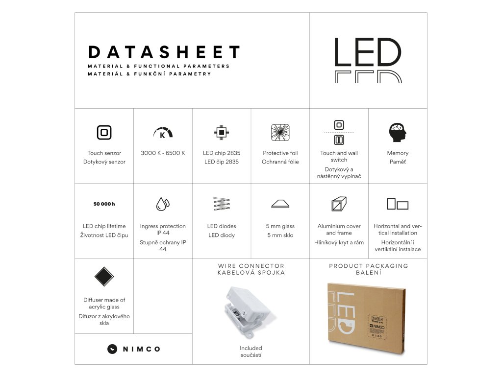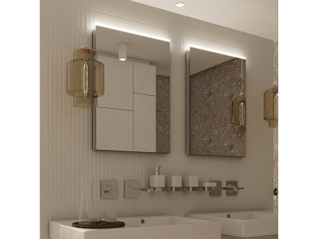Koupelnové podsvícené LED zrcadlo. Možnost nastavení teploty svítivosti od 2700 - 6000 K. Příkon 9 W. 648 Lumen.