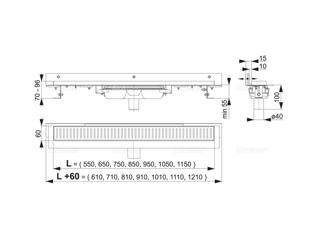Alcadrain APZ1104-550 Liniový podlahový žlab FLEXIBLE LOW pod libovolný obklad