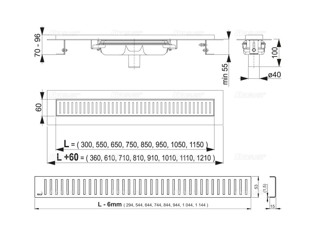 Alcadrain APZ1101-1050 Liniový podlahový žlab LOW s okrajem