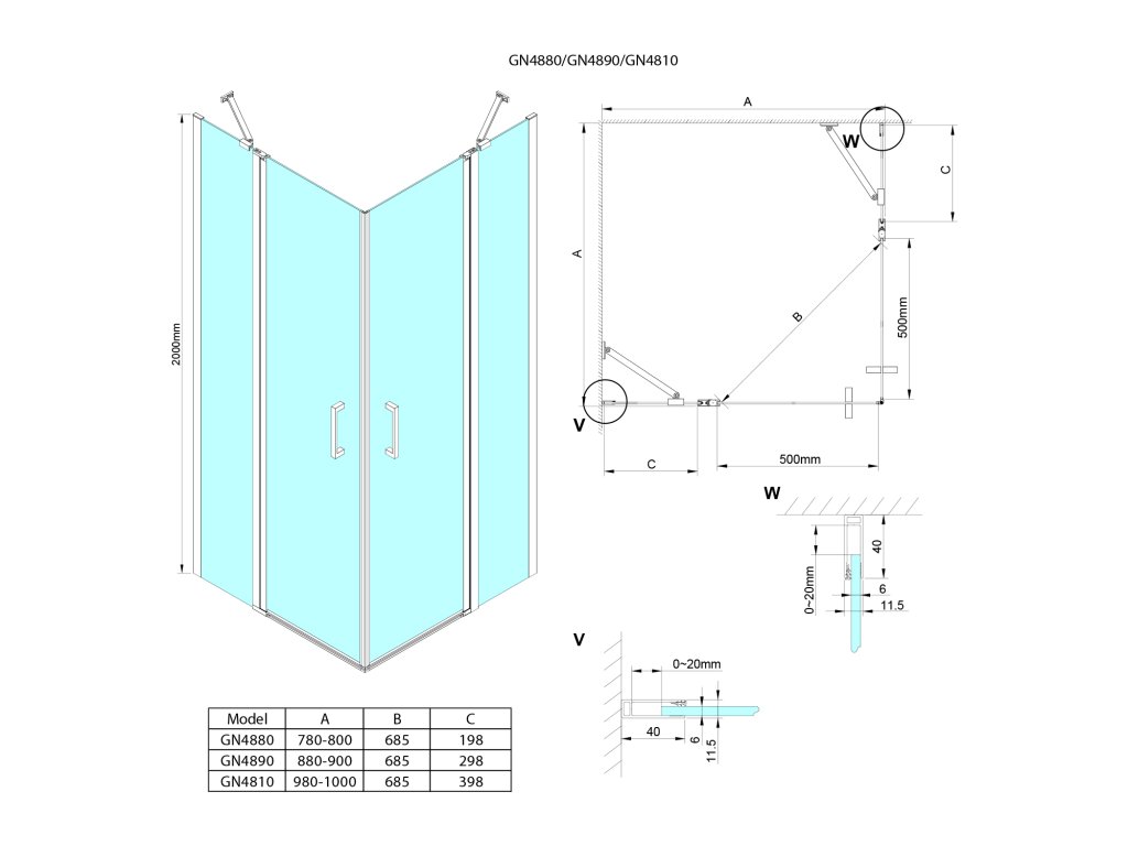 LORO čtvercový sprchový kout 800x800 mm, rohový vstup