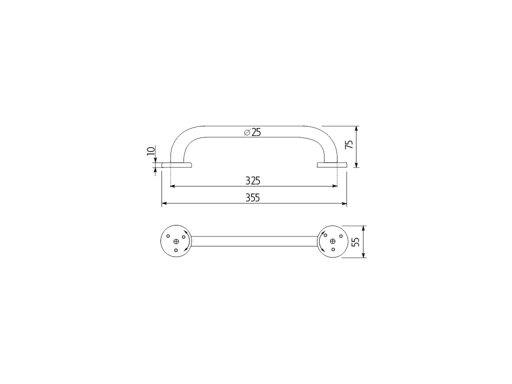 Pomocné přidržovací madlo k vaně. Délka 300 mm. Průměr 25 mm.