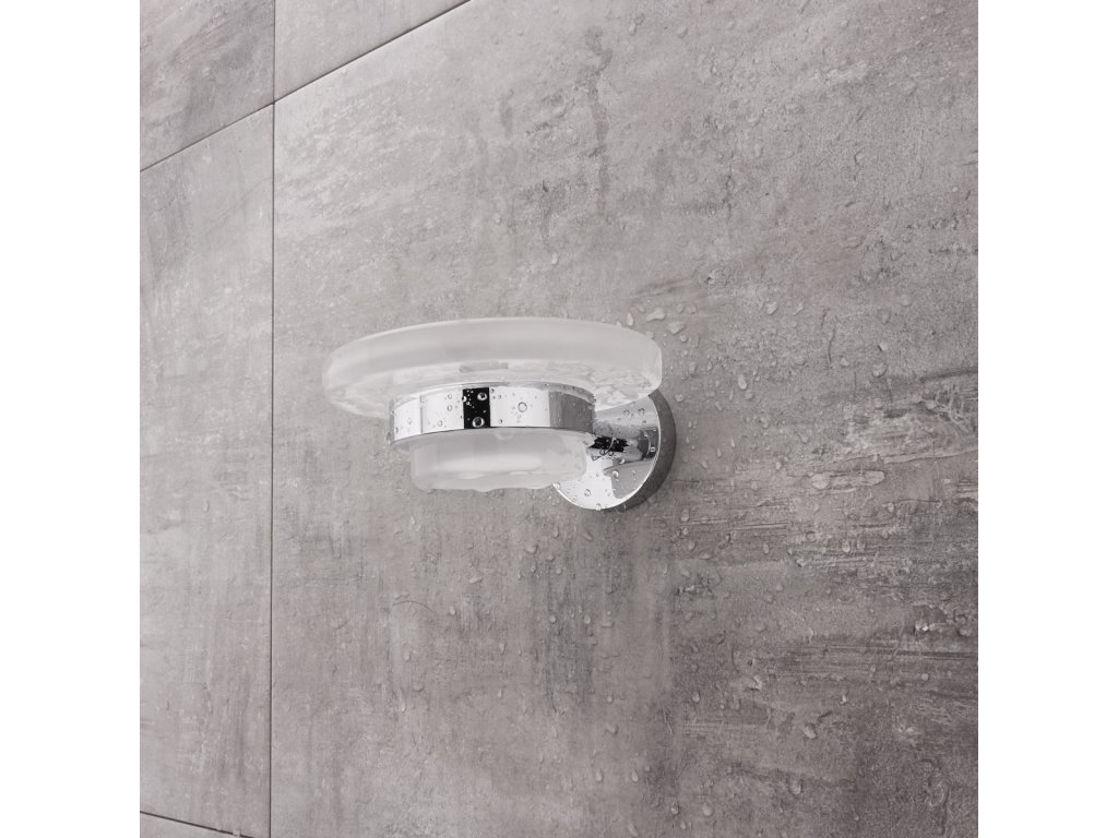 Skleněná matovaná mýdlenka.