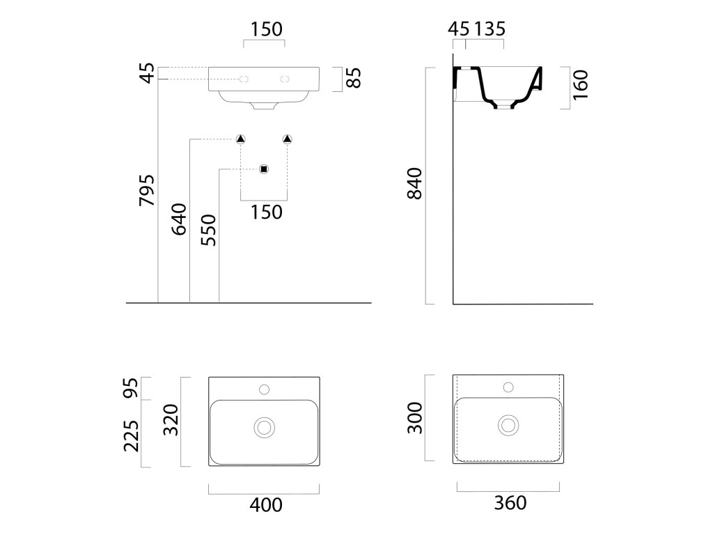 NUBES keramické umývátko 40x32cm, bez otvoru, bistro mat