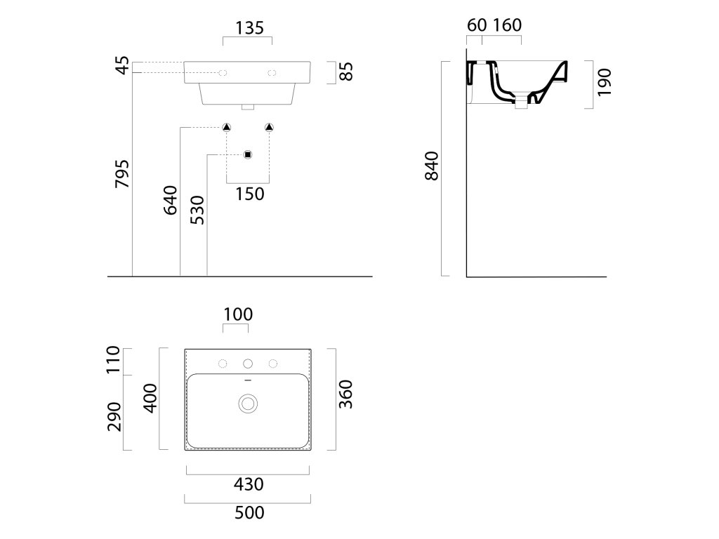 NUBES keramické umyvadlo 50x40cm, 3 otvory, bílá ExtraGlaze