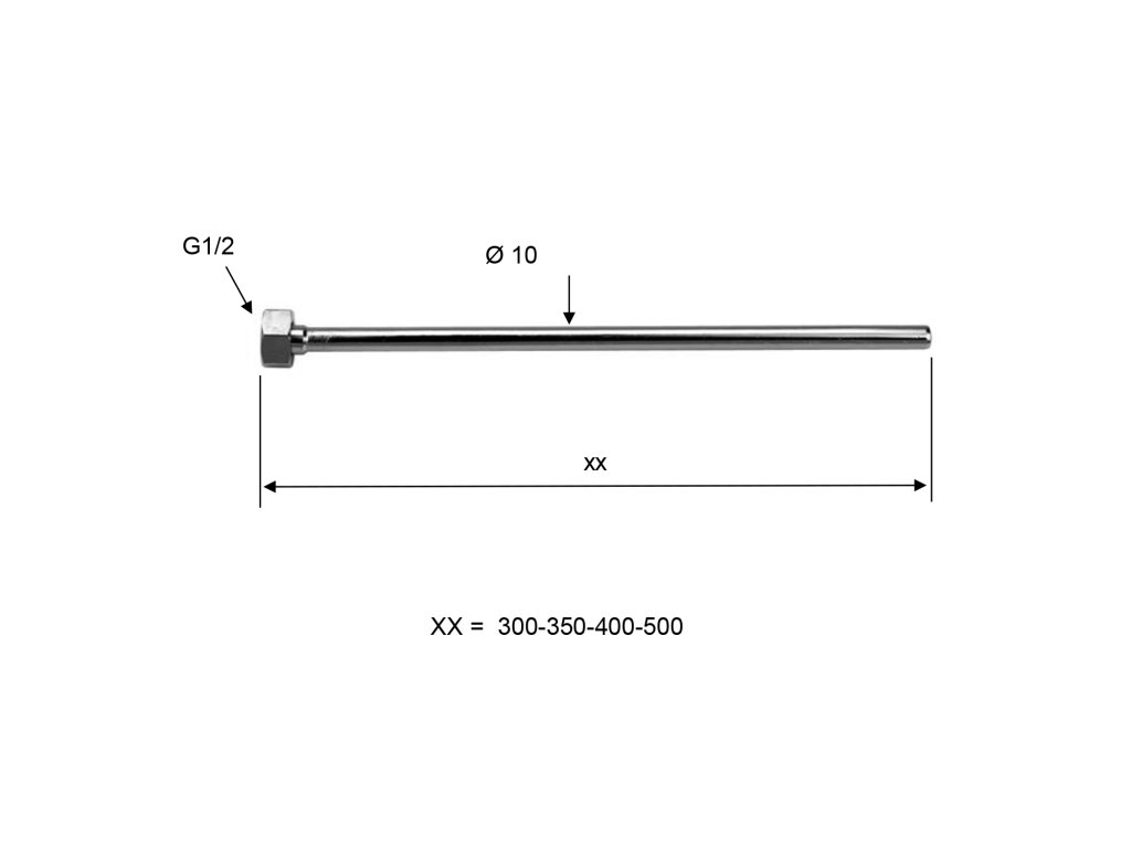 Pevná připojovací trubka průměr 10 mm, F 1/2', 40 cm, chrom