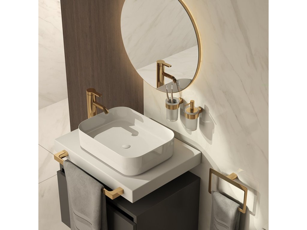 Snad inspirován pohledem na krásu Pyrenejí navrhl designér sérii doplňků PIRENEI. Masivní základna, kombinace přímých linií a zaoblených hran je spojením elegance a majestátnosti. Na výběr jsou doplňky v provedení v chromové, matné černé, matné bílé, gun metal, zlaté a matné zlaté variantě.