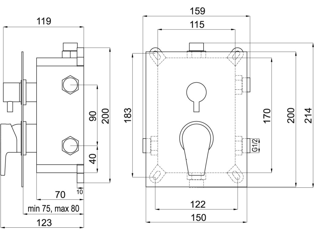 Podomítková baterie s boxem 3 vývody, VISION X BOX42051RX-0