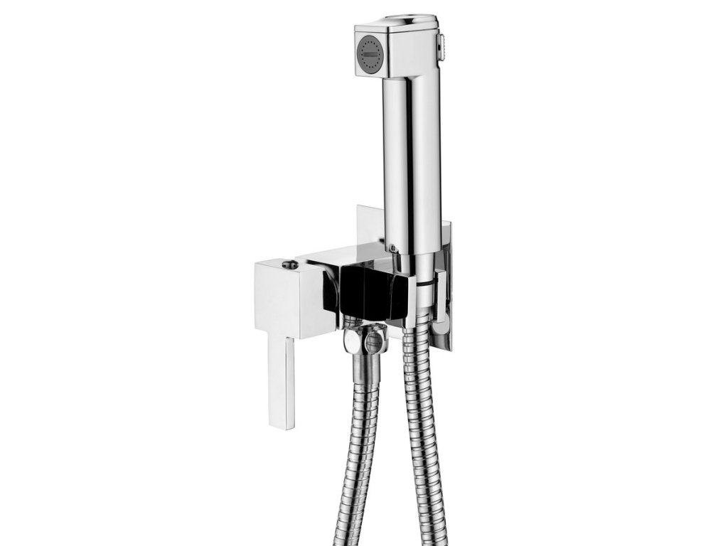 Podomítková bidetová baterie se Stop sprškou, hadice 1,2m, hranatá, chrom