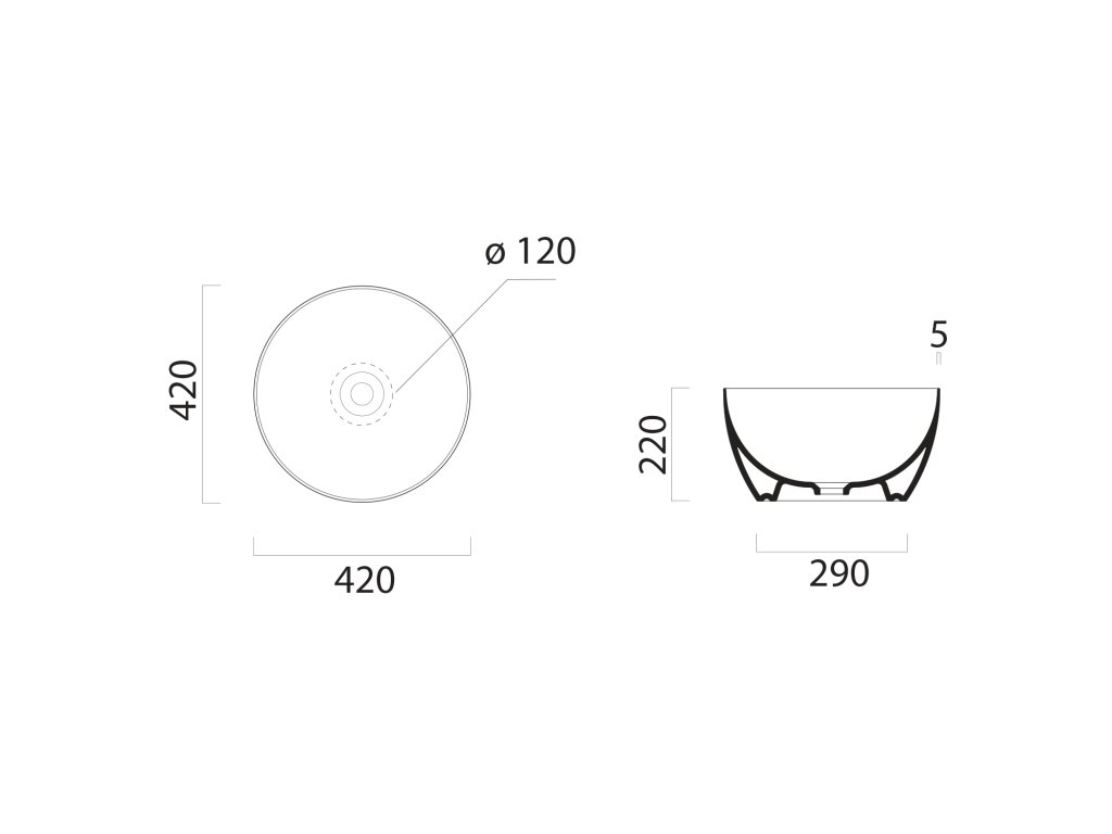 PURA keramické umyvadlo na desku vysoké, průměr 42cm, creta mat