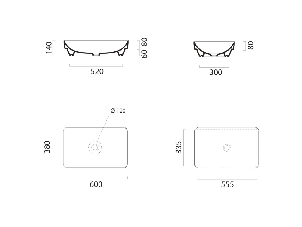 - Hranatá umyvadla s decentně zaoblenými rohy a štíhlou hranou