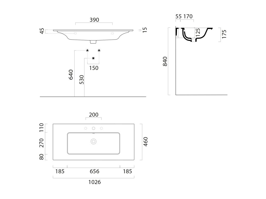 PURA keramické umyvadlo Slim 102x46cm, bez otvoru, bílá mat