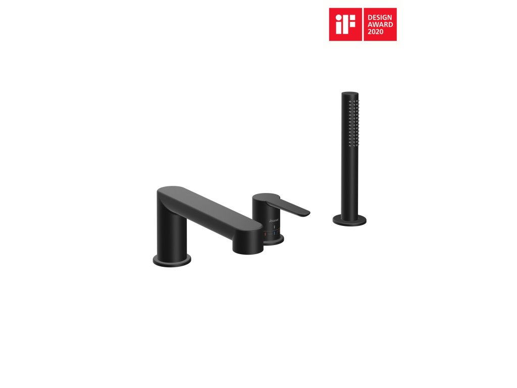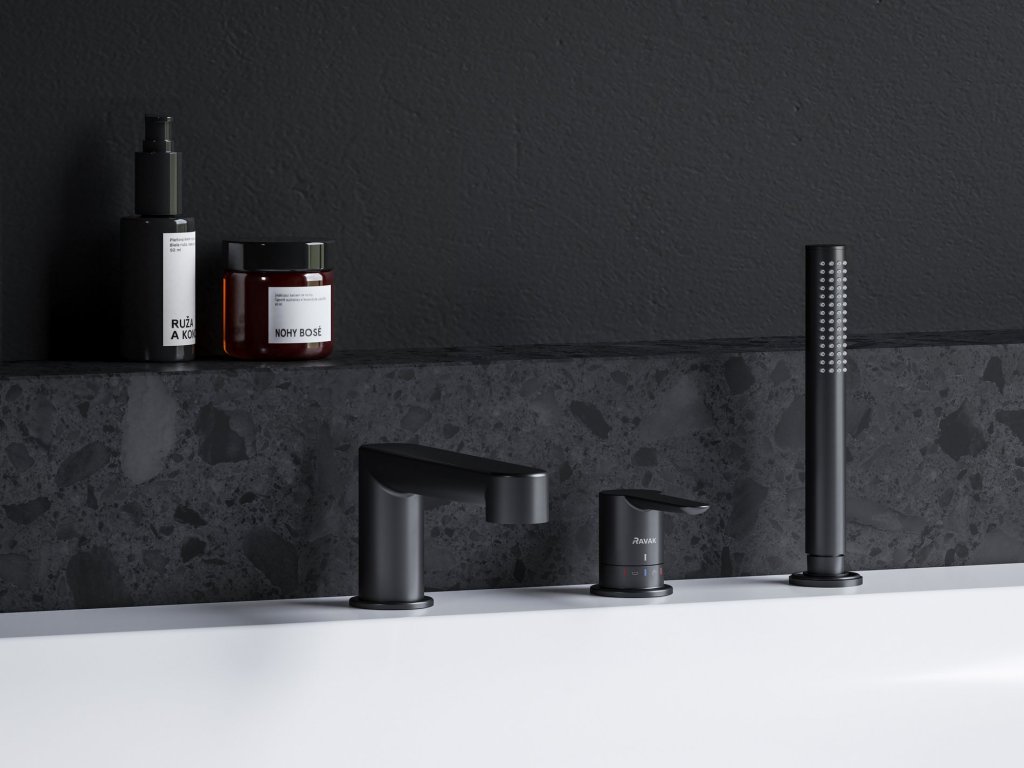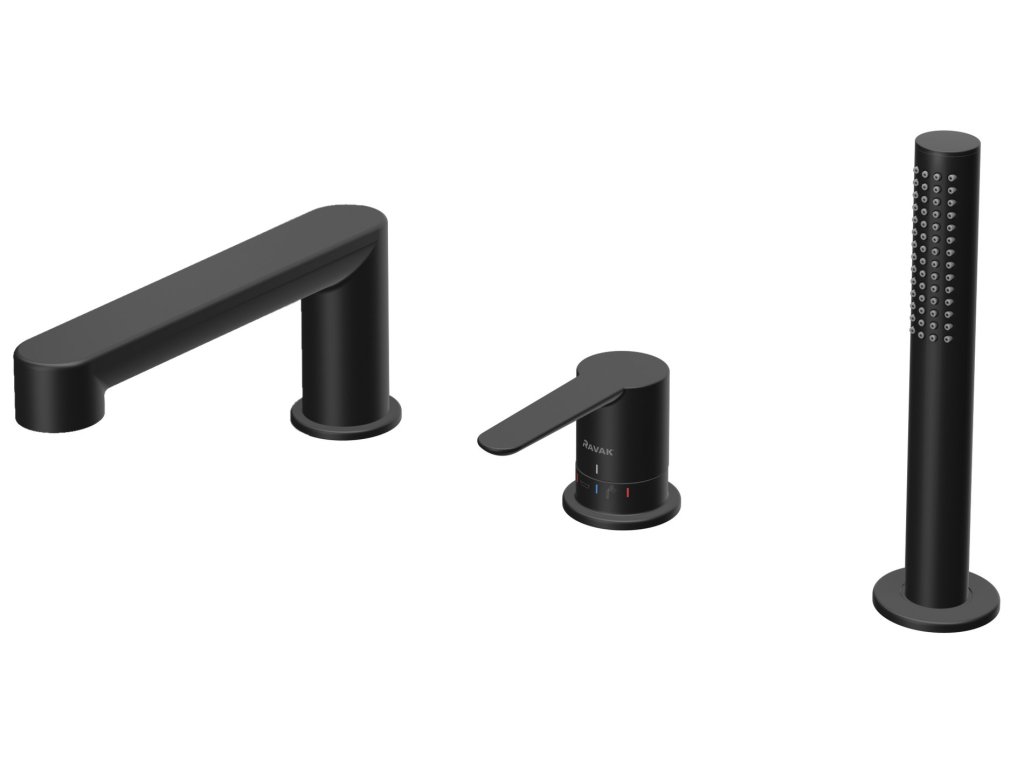 Ravak PU 026.20BL Vanová stojánková 3-otvorová baterie se sprchovým setem, s pípou, černá