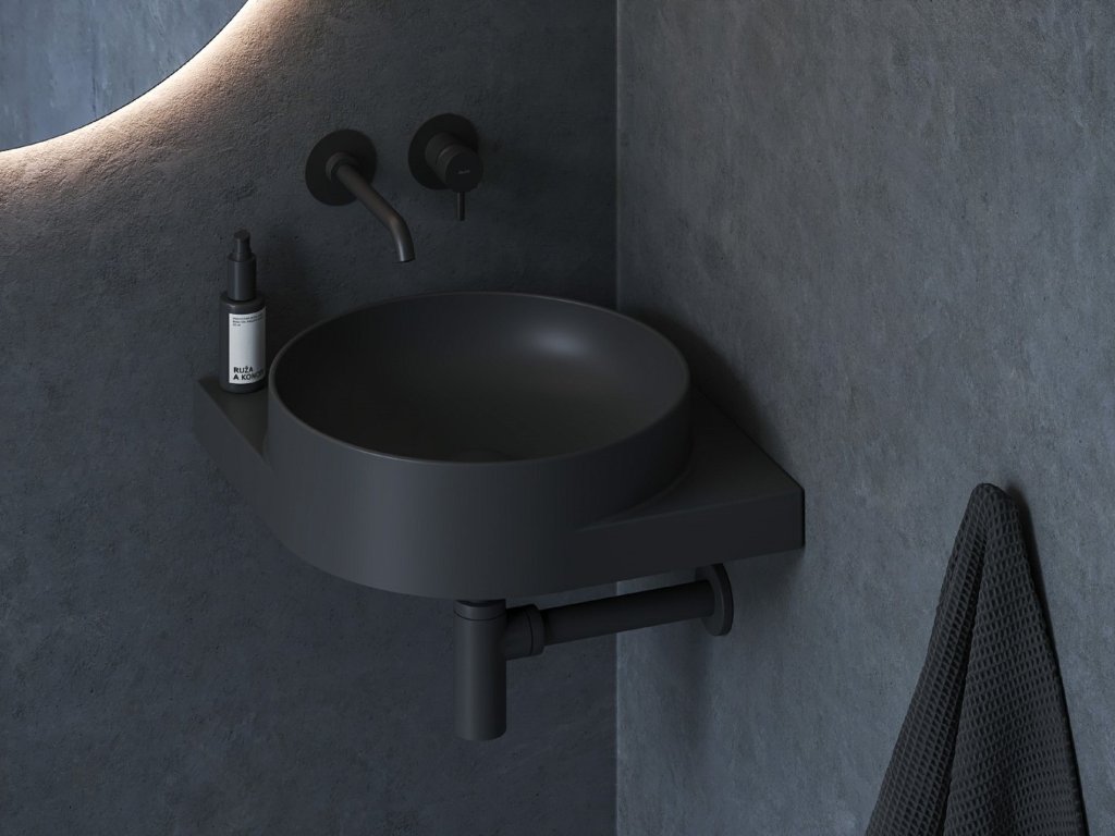 Yard nepotřebuje žádný nábytek. Instaluje se přímo na zeď pomocí ocelové konzole. A tu neskrýváme. Naopak. Konzole ladí s tvarem umyvadla a podtrhuje jeho celkový dojem.Vylaďte si každý detail