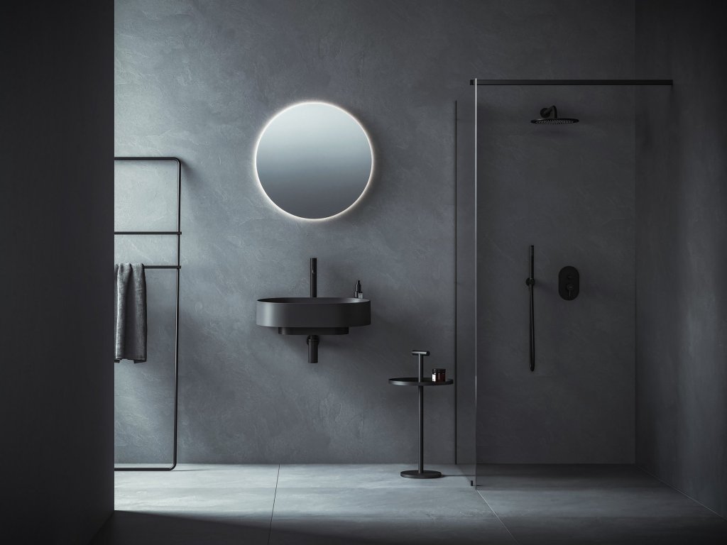 Kolekci Yard tvoří pět minimalistických umyvadel – tři rovná umyvadla a dvě umyvadla do rohu v barvě bílé, bílé matné a antracit.Za vším stojí pevná konzole