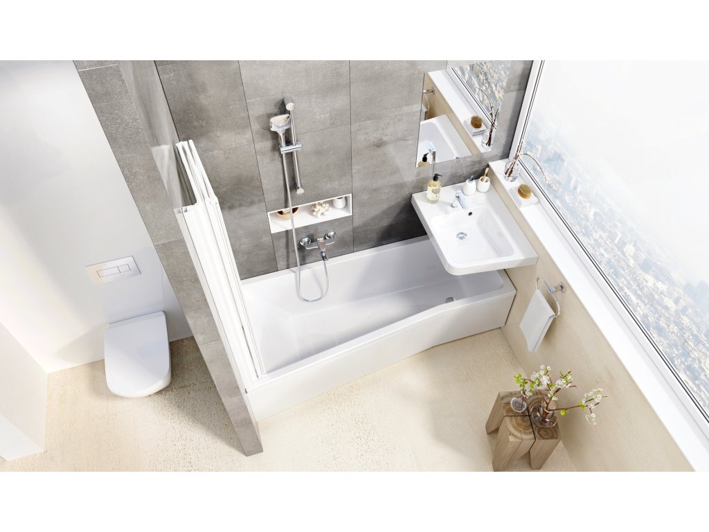 Vana BeHappy II pracuje uvážlivě s prostorem tak, abyste z malé koupelny získali co nejvíce. Mírné rozšíření v ramenou a úzký lem poskytuje velký vnitřní prostor, takže se můžete pohodlně položit a relaxovat.Zástěna promění vanu ve sprchu