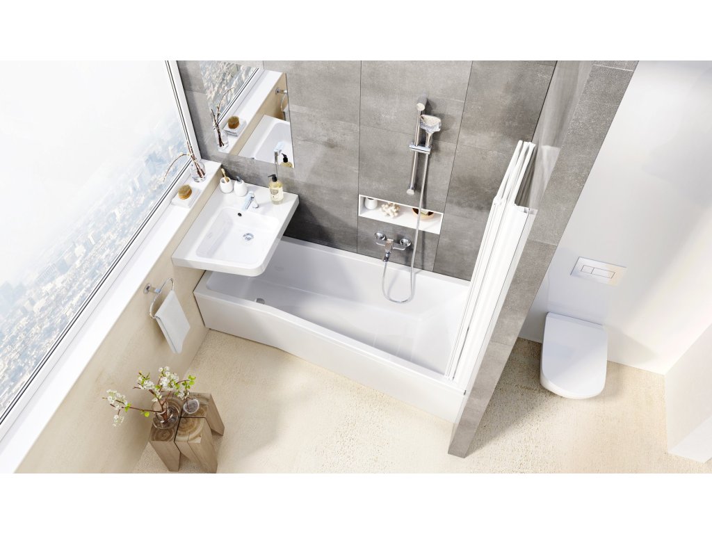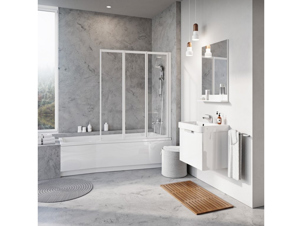 Vana tvoří celek se sprchovou zástěnou VS3, která přesně kopíruje její tvar. Tato třikrát zalomená zástěna z ní vytvoří dokonale těsnící sprchový kout. Skládá se ke zdi, takže neruší interiér a nijak nepřekáží při vstupu do vany.Obložení za pár minut