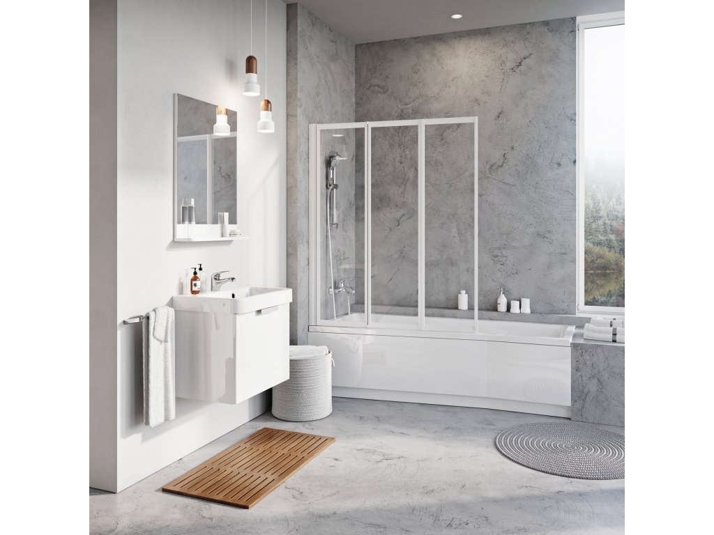 Vana tvoří celek se sprchovou zástěnou VS3, která přesně kopíruje její tvar. Tato třikrát zalomená zástěna z ní vytvoří dokonale těsnící sprchový kout. Skládá se ke zdi, takže neruší interiér a nijak nepřekáží při vstupu do vany.Obložení za pár minut