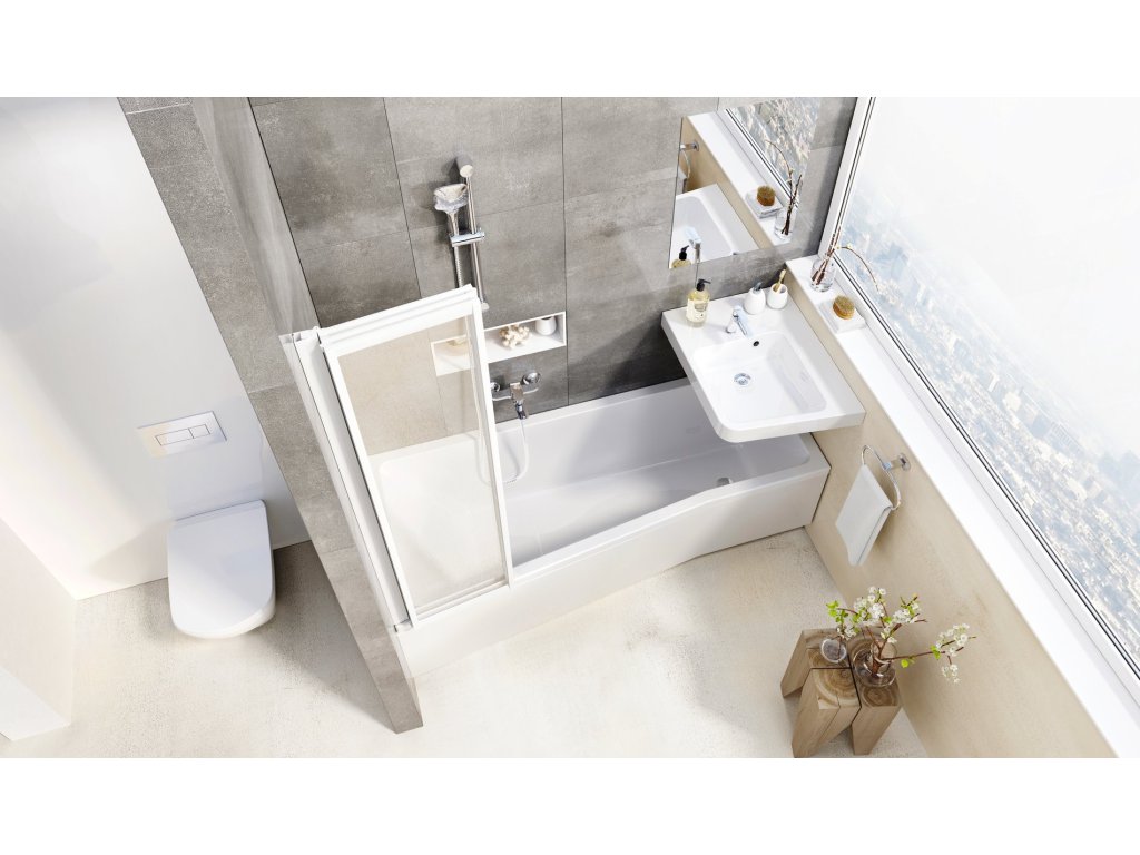Vana BeHappy II pracuje uvážlivě s prostorem tak, abyste z malé koupelny získali co nejvíce. Mírné rozšíření v ramenou a úzký lem poskytuje velký vnitřní prostor, takže se můžete pohodlně položit a relaxovat.Zástěna promění vanu ve sprchu