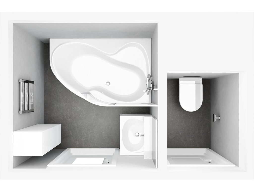 - doplňky k dokoupení: podpora, čelní panel, vanový odtokový komplet, vanová stojánková baterie "vodopád" RS 025