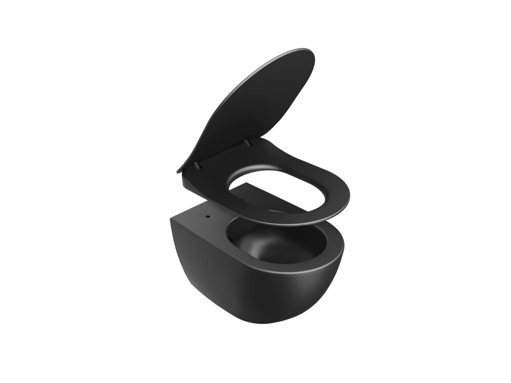 Kvalitní černý matný keramický materiál ve svěžím a domyšleném designu pro každý den. Konstrukce toalety bez oplachového lemu umožňuje spláchnutí celé plochy. WC je určeno k zavěšení na zeď.