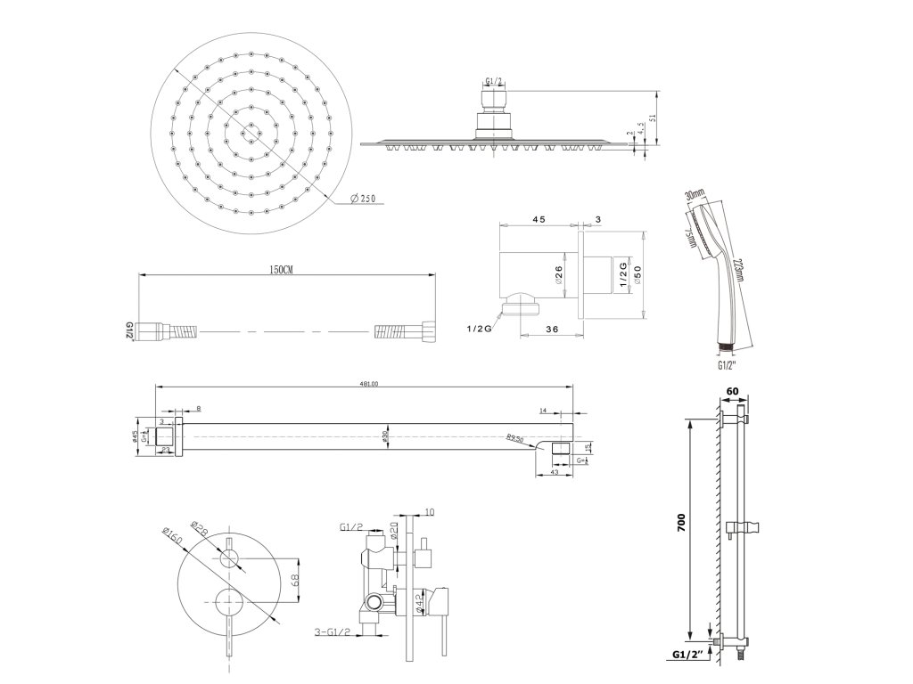 RHAPSODY podomítkový sprchový set s pákovou baterií, 2 výstupy, posuvný držák sprchy s vyústěním, chrom