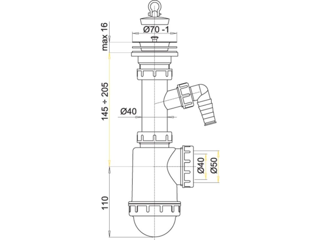 • zátka z PVC • mřížka výpusti z leštěného nerezového plechu • vývod odpadu připraven pro napojení odpadní trubky – průměr 50 nebo 40 mm • s přípojkou pro myčku nebo pračku