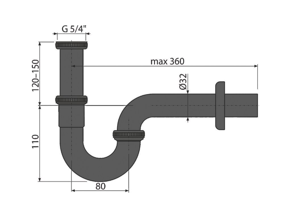 Alcadrain A4320 Sifon pro umyvadlo kovový U s převlečnou maticí 5/4˝