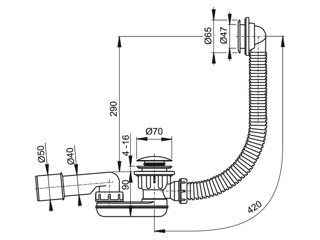 • zátka odtoku vody pracuje na principu click/clack systému - průměr 70 mm • je vyrobena z kovu s kvalitní chromovou úpravou • mřížka přepadu je plastová pochromovaná • snížená stavební výška • A506KM je doporučen pro vaničky Sabina a Sabius od Ravaku, výrobky Saniform a další hluboké sedací vaničkyí výškou