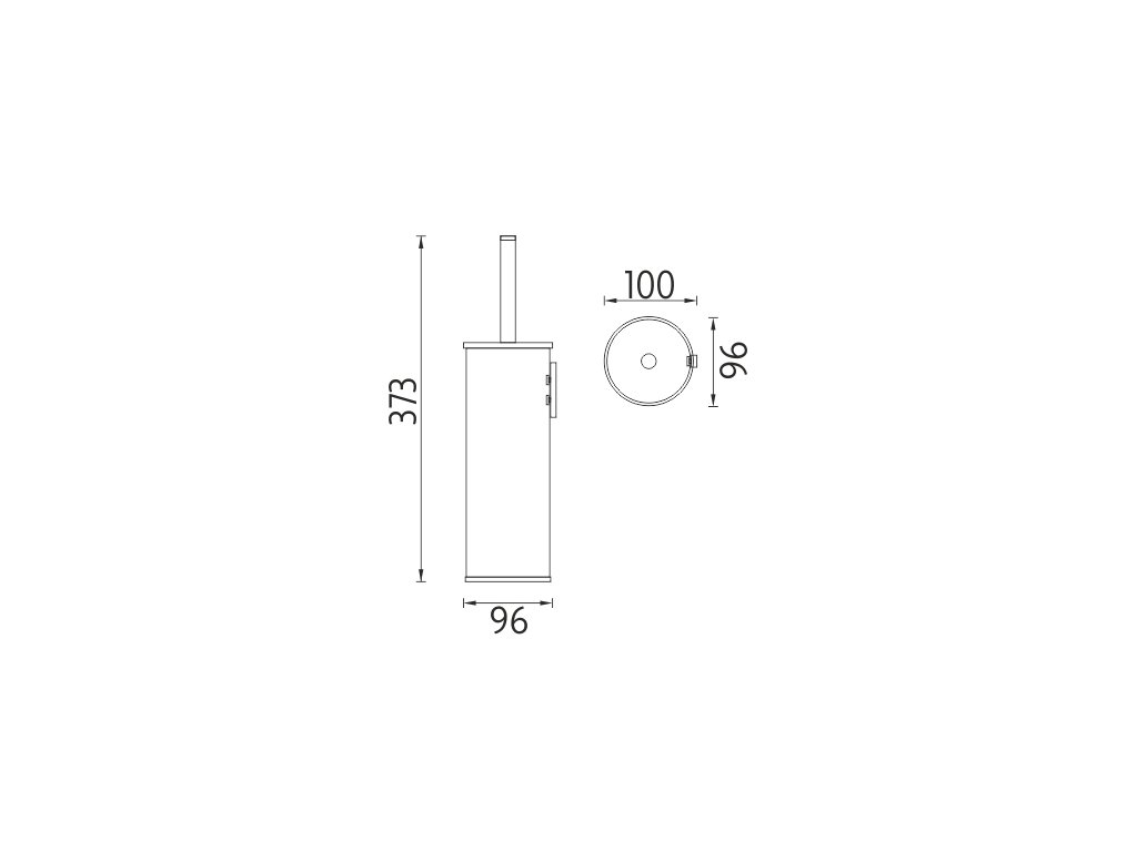 WC štětka, celokovový tubus. Na zavěšení, na postavení. Masivní provedení s výsuvnou nádobkou.