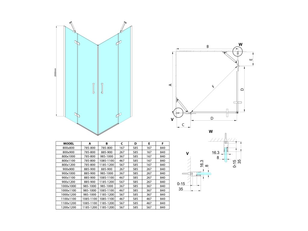 Čtvercová/obdélníková zástěna s rohovým vstupem