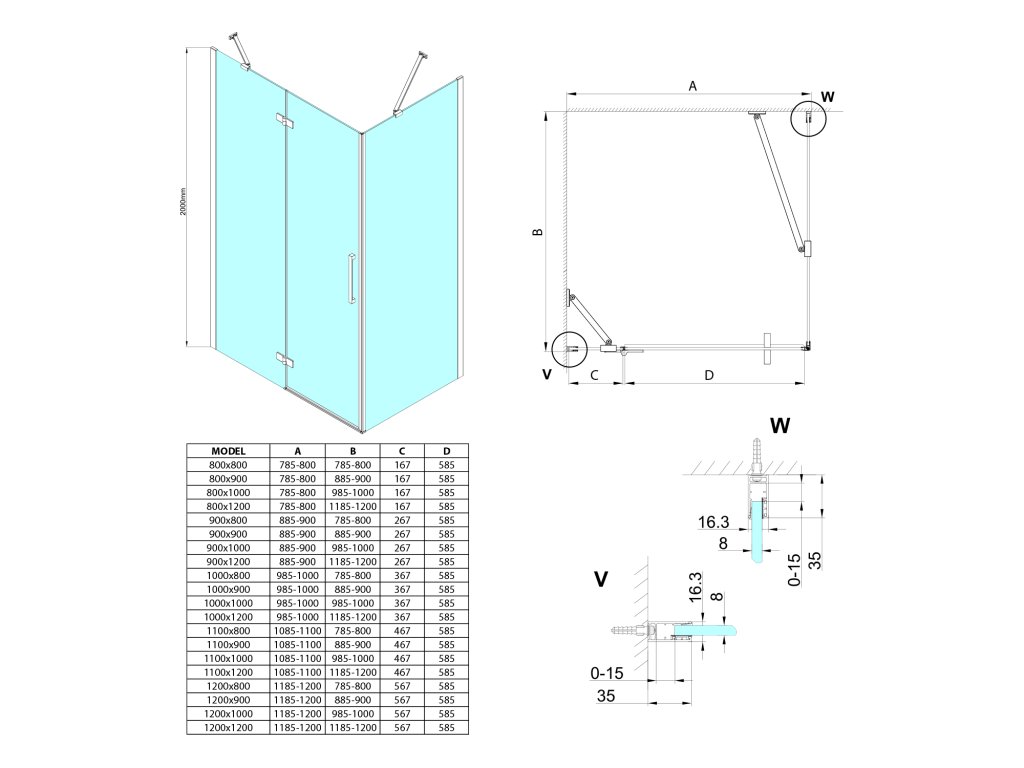 - Výška zástěn 2000 mm