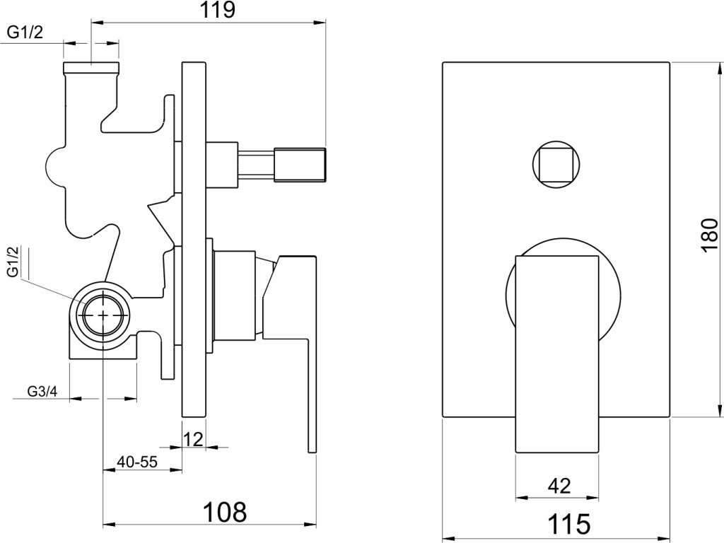 Vanová sprchová baterie s přepínačem EDGE chrom 36050R-0
